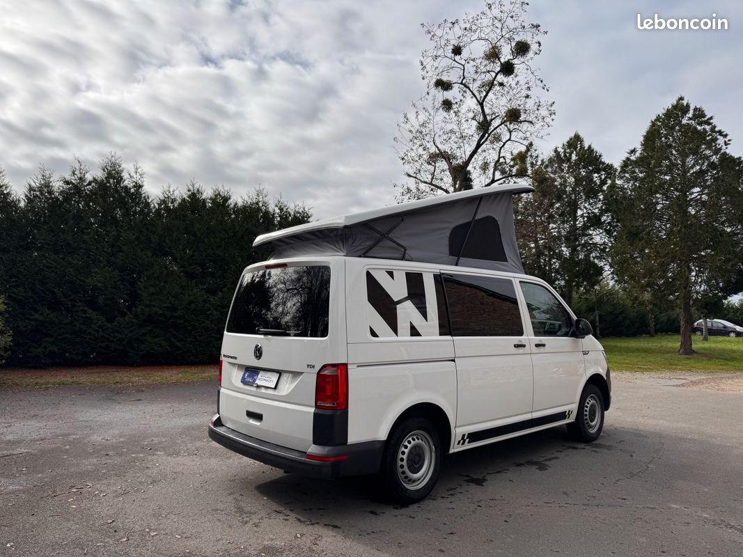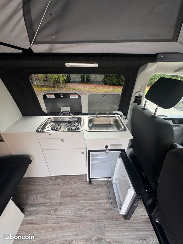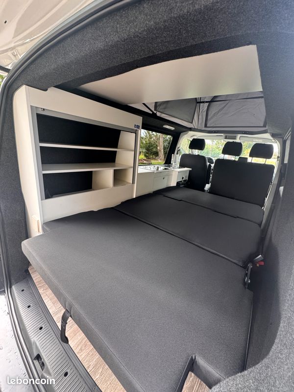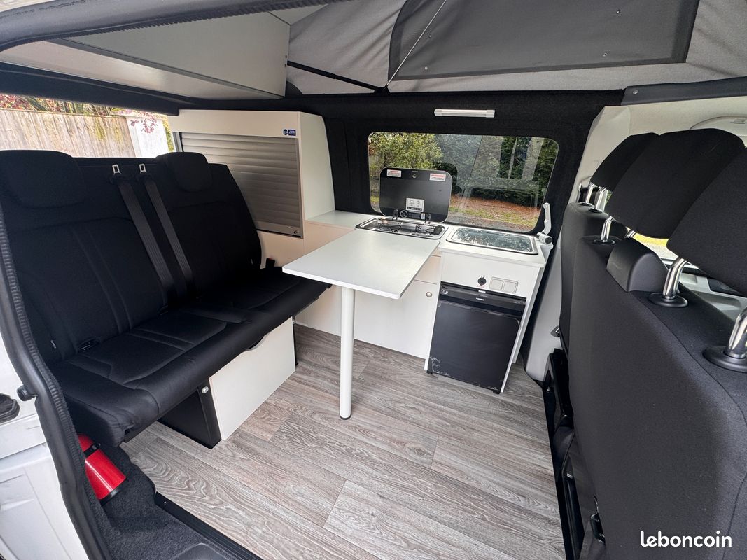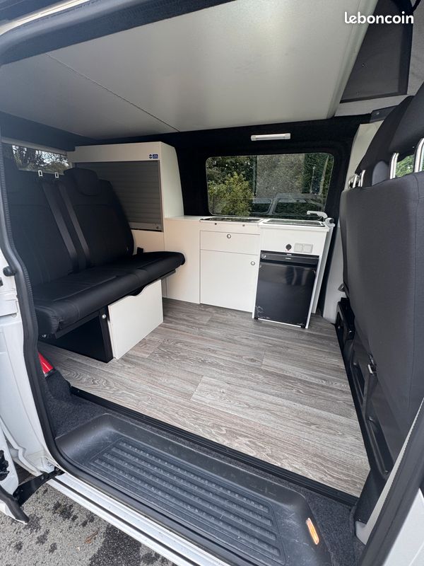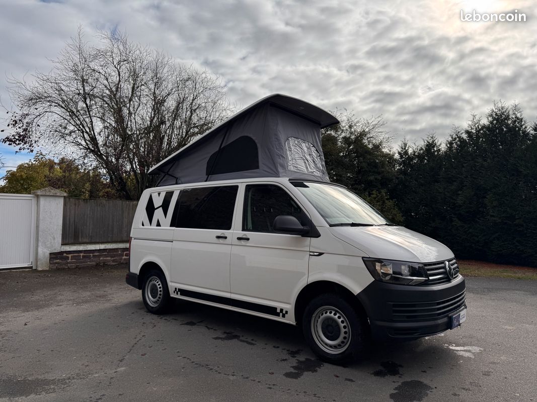 Ce T6 de 2018 est équipé d'un aménagement intérieur neuf et complet : cuisine, frigo, toit relevable Reimo, 4 couchages. Homologué VASP 5 places, il est prêt pour vos prochaines escapades.